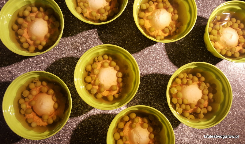 Gdy zastygnie wsypać trochę groszku i znowu wlać troszkę galaretki.